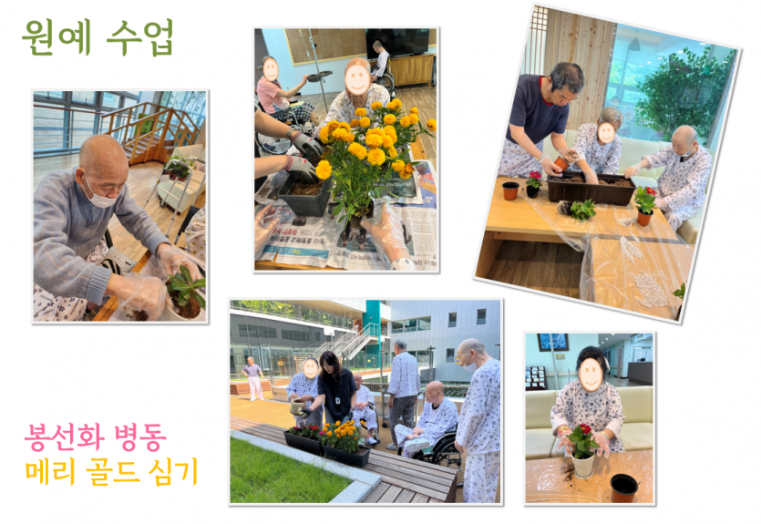 7월 비약물프로그램 (원예수업) 페이지 정보 작성자 경기도립노인전문동두천병원 댓글 0건 조회 346회 작성일 25-08-03 15:58 목록 본문 7월 원예수업시간에는 어르신들과 함께 병동내 에서 정성껏 심은 꽃들을야외 중앙정원에 예쁘게 전시하였습니다 이전글7월 비약물 프로그램(미술수업) 25.08.03 다음글7월 비약물프로그램 (공예수업) 25.08.03 댓글 0 댓글목록 등록된 댓글이 없습니다.